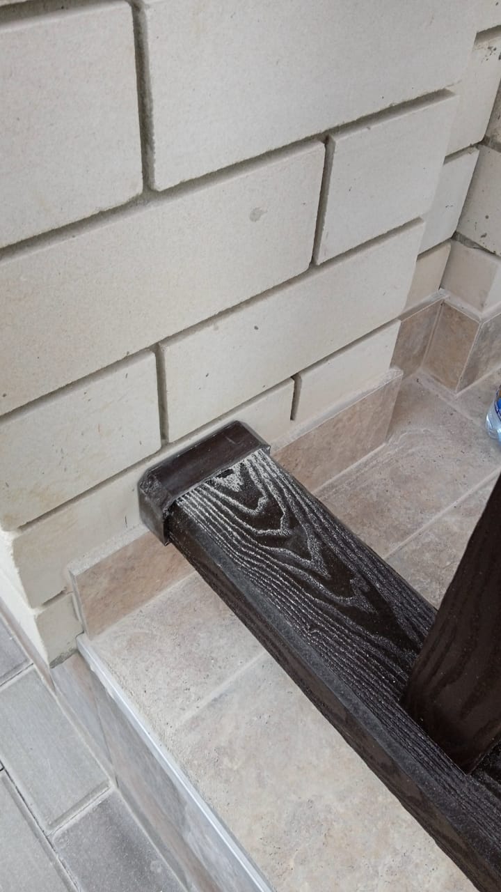 Перила пришлось пилить под углом и крепить без хомутов-креплений, так как клиент отказался покупать дорогие алюминиевые хомуты с шарнирами